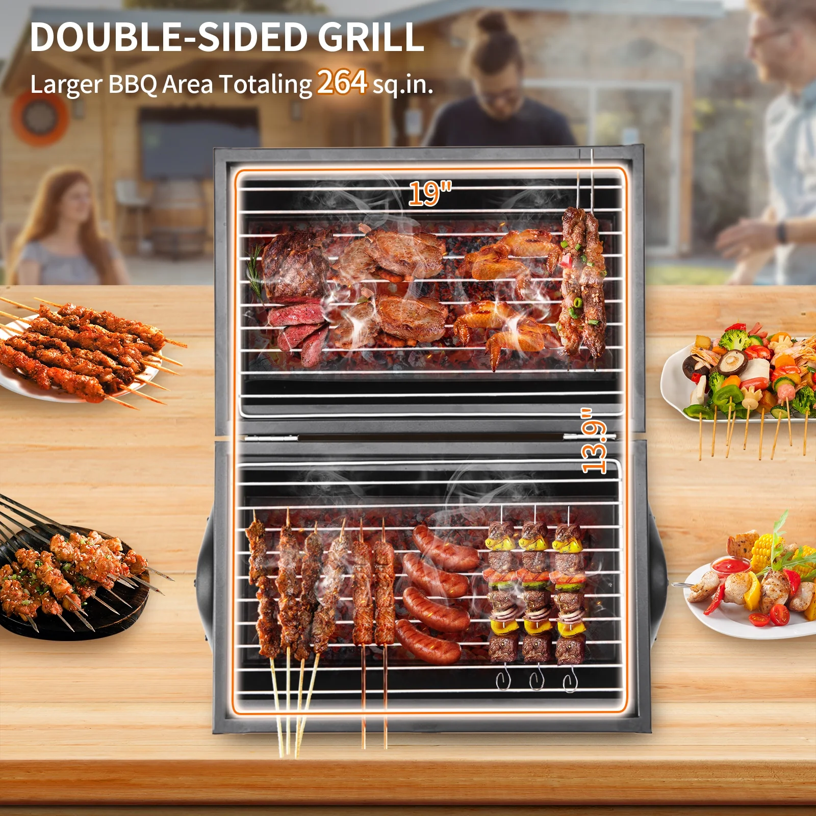 The dual-side layout provides a wide 50 cm cooking surface, giving you plenty of room to prepare meals for family and friends.You can also use one side only and close the lid to smoke your food, adding a rich and flavorful smoky taste to your dishes.